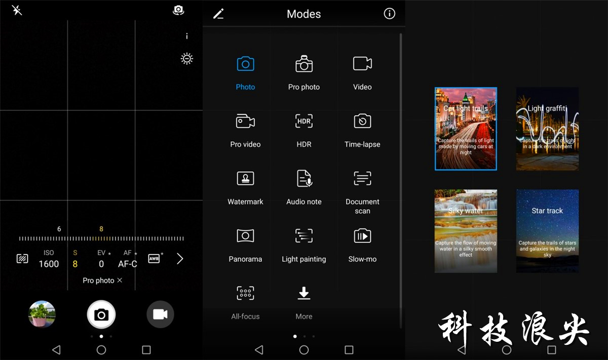 照相机页面基本上和P9和P10同样,根据拖动来开展设定。照相机内嵌了丰富多彩的技术专业照相方式,必须一定的時间学习培训,你乃至能够自定单反快门速度、ISO和手动对焦,技术专业方式十分的功能强大。